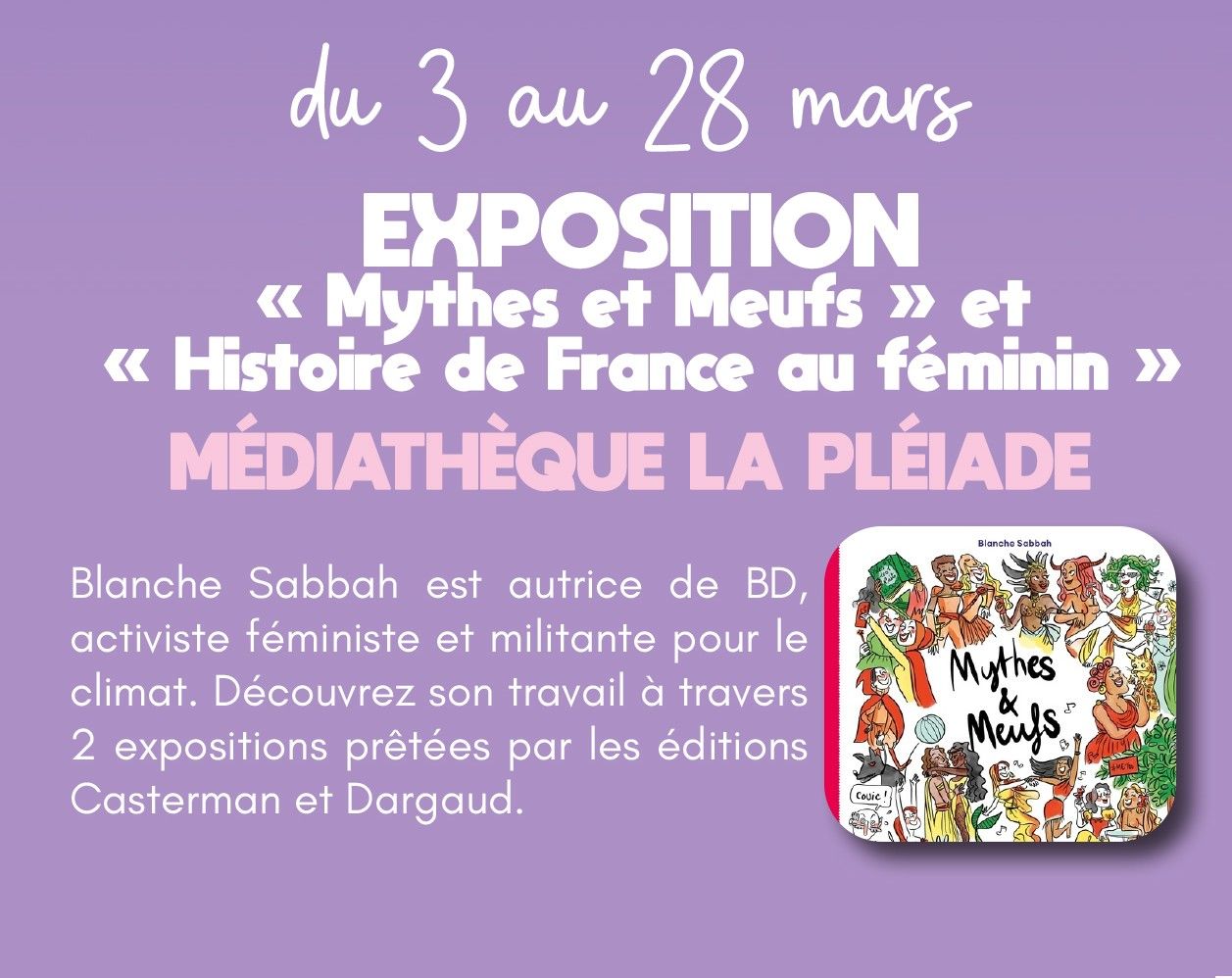 Blanche Sabbah est autrice de BD, activiste féministe et militante pour le climat. Découvrez son travail à travers 2 expositions prêtées par les éditions Casterman et Dargaud.